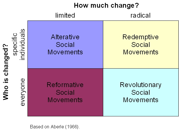 Reformative social movements – Limited change in everyone.