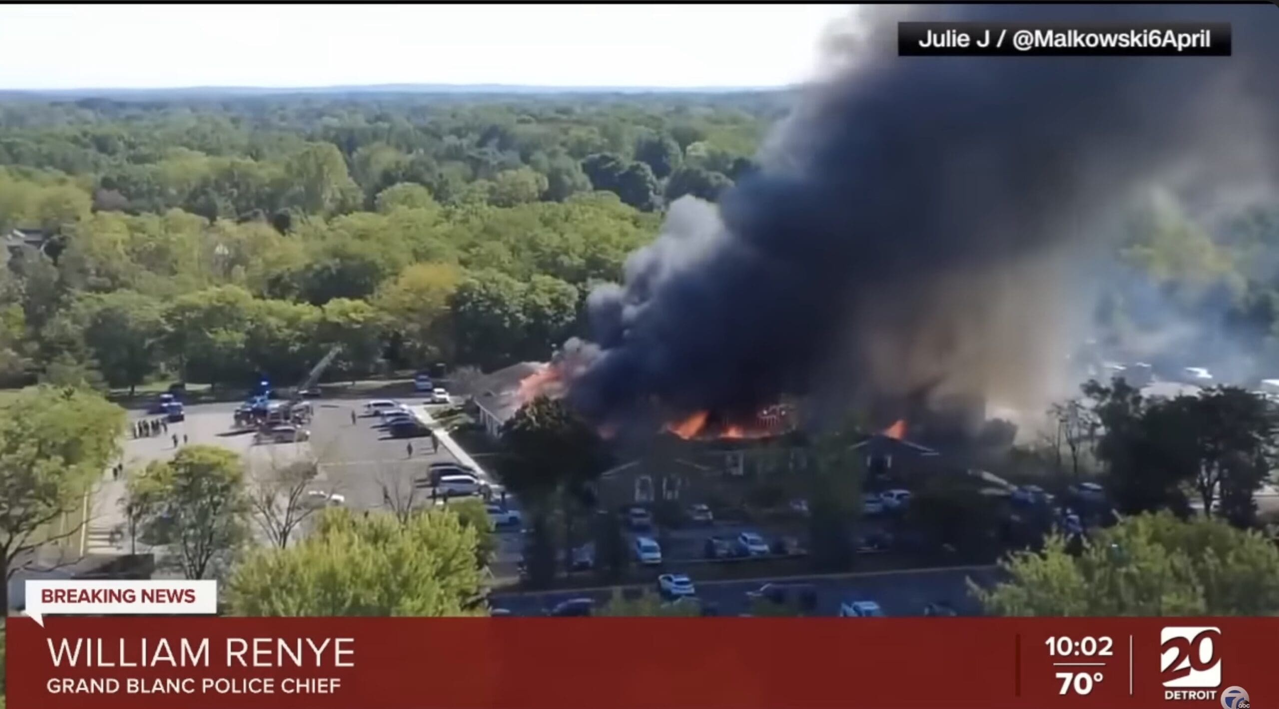 An ex-Marine smashed a pickup into a Church of Jesus Christ of Latter-day Saints church in Michigan, opened fire and set the building ablaze during a crowded Sunday service and then was fatally shot by police. At least four people were killed and eight wounded, and authorities were searching the building ruins for more victims.