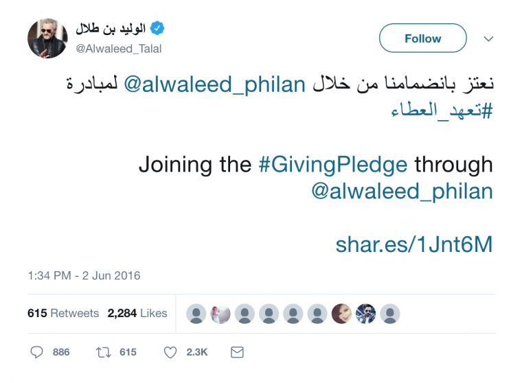 Alwaleed Philanthropies Joins the "Giving Pledge"